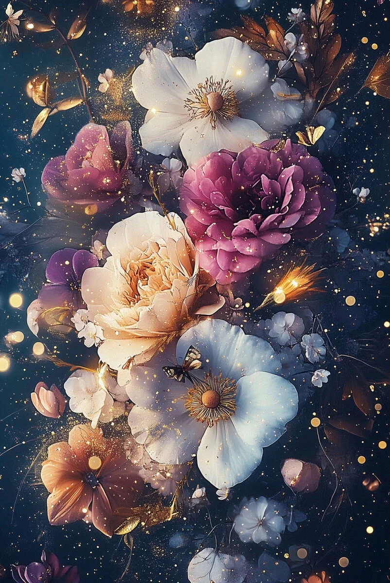 Glasschilderij 80x120cm Bloemen met lichtjes verticaal