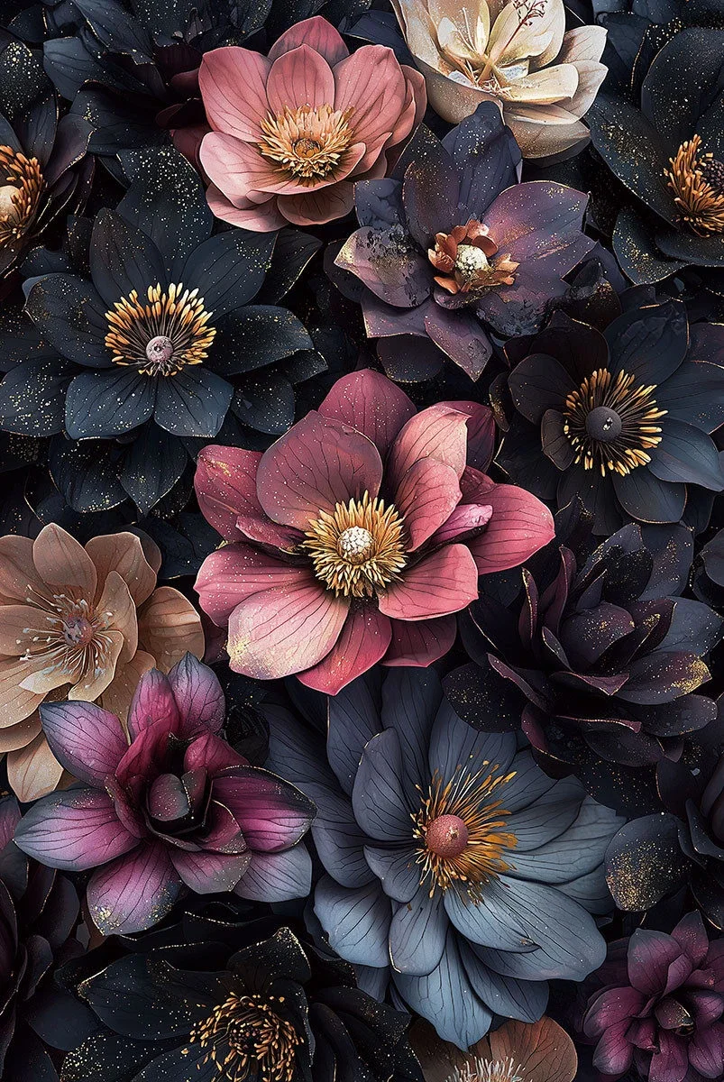 Glasschilderij met 3D reliëf 120x80cm Getekende bloemen