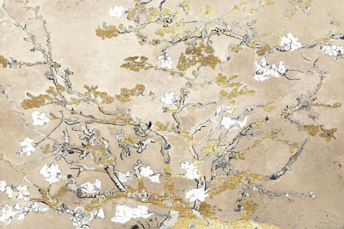 Glasschilderij met 3D reliëf 120x80cm Gouden takken